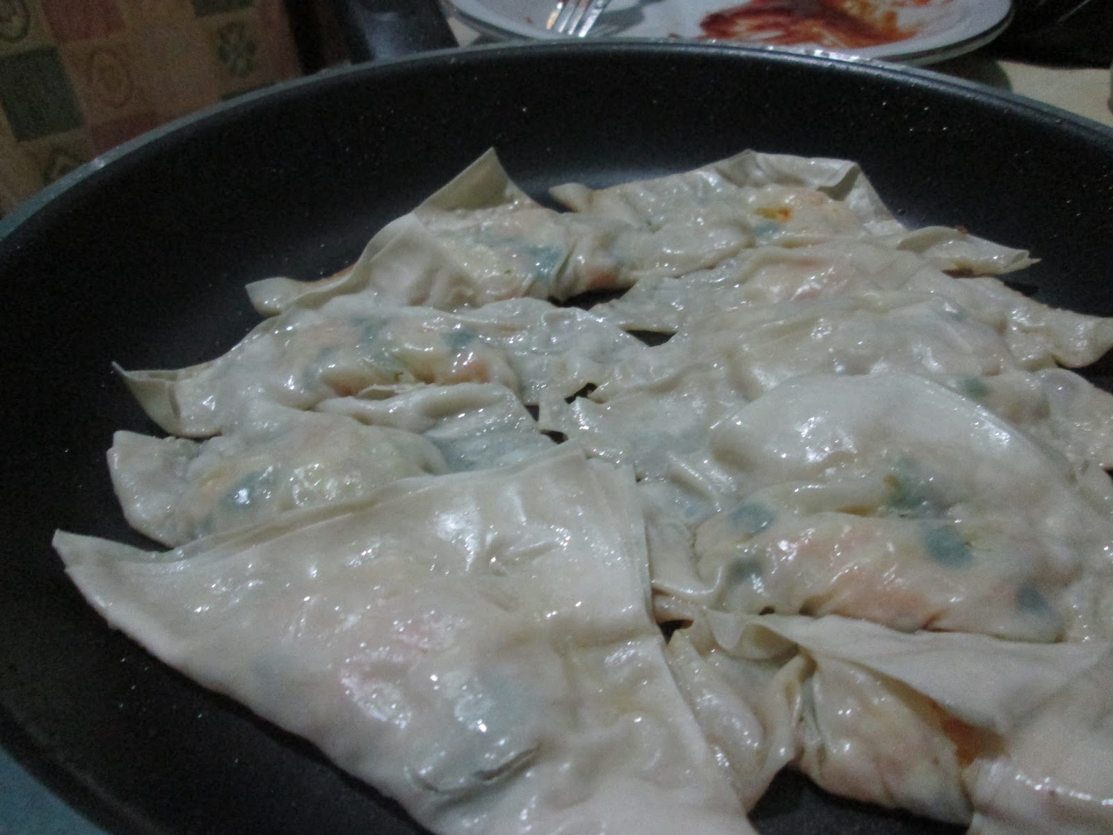 Flipped the dumpling and wait until golden browned if you want your dumpling crispy on both sides or cooked it golden brown just on one side if you want your dumpling has soft textures